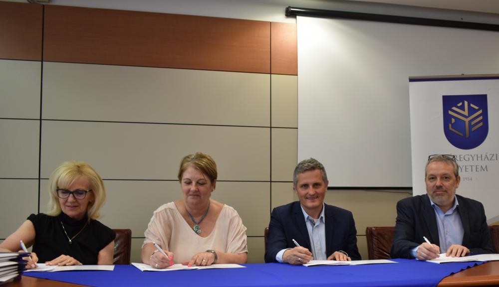 A sajtótájékoztatót követően Vassné prof. dr. Figula Erika, a Nyíregyházi Egyetem rektora, Halkóné dr. Rudolf Éva, kancellár, valamint Jean-François André Marie Remy, a Cofidis Magyarországi Fióktelep-vezetője és dr. Szendrei Árpád Attila, HR és jogi igazgató látta el kézjegyével azt a három együttműködési megállapodást mely mögött több éves előkészítő és szakmai munka áll. A jövőben a pénzügyi vállalat szakmai gyakorlat biztosításában, a duális képzés vállalati partnereként, de közös konferenciák megszervezésében is partnere lesz a felsőoktatási intézménynek. A Cofidis vállalta, hogy ösztöndíjjal is támogatja a hallgatókat.