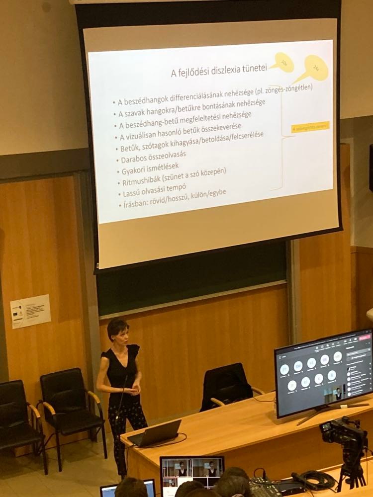 A Nyíregyházi Egyetem Nyelv- és Irodalomtudományi Intézetének és a Magyar Nyelvtudományi Társaság Szabolcs–Szatmár–Bereg megyei szervezetének a szervezésében május 10-én került sor Schéder Veronika Az integratív diszlexia-terápia című előadására. Az intézet egykori oktatója napjaink egy égető, egyre több tanulót érintő problémájáról, a diszlexiáról és annak fejlesztési lehetőségeiről tartott élvezetes előadást a jelen lévő és az előadást online követő népes közönségnek. Schéder Veronika évek óta foglalkozik a diszlexiás gyerekek fejlesztésével, az előadáson bemutatott, alsó és felső tagozatos tanulóknak kifejlesztett klasszikus balettal és elektronikus írástechnikával kombinált módszere alkalmazásával az esetek jelentős részében hatékonyan sikerült javítani a diszlexiás gyerekek olvasástanulását és iskolai teljesítményét.