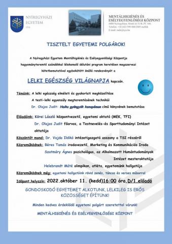 Meghívó a Lelki egészség világnapja egyetemi programjára
