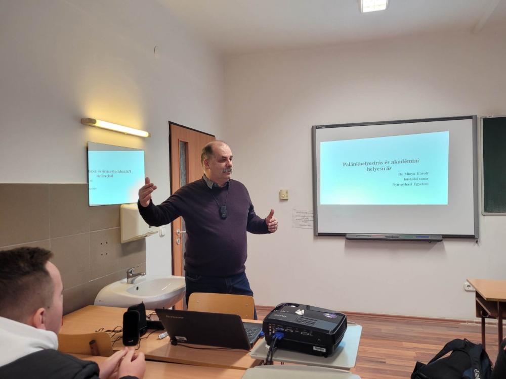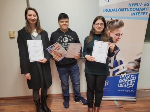 A verseny után dr. Minya Károly tartott előadást Akadémiai és palánkhelyesírás címmel Szólt az első szabályzatról, valamint a Magyar Nyelvi Szolgáltató Irodáról, bemutatta a legismertebb helyesírási mémet, és elemezte a hibás, esetenként humoros feliratokat. A megmérettetésen első helyezést ért el Nagy Bálint (Eötvös József Gyakorló Általános Iskola és Gimnázium, felkészítő tanár: Csorba Erzsébet); második lett Bánszki Blanka Zoé (Nyíregyházi Kölcsey Ferenc Gimnázium, felkészítő tanár: dr. Buczkóné Rangoni Claudia), a harmadik helyen pedig Szabó Nikolett végzett, aki a kisvárdai Bessenyei György Gimnázium és Kollégium tanulója, felkészítő tanára: Dolhainé Fodor Enikő. Minden résztvevő egy emléklappal gazdagodott, emellett a nyertesek oklevelet és többek között a Magyar Nyelvészeti Intézeti Tanszék oktatónak a könyvét kapták jutalmul.