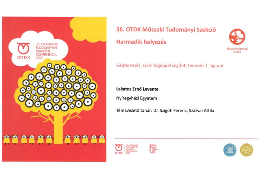 Kiválóan szerepeltek a Nyíregyházi Egyetem gépészmérnök szakos hallgatói a 36. Országos Tudományos Diákköri Konferencia Műszaki Tudományi Szekcióján, amely 2023. április 19-21 között került megrendezésre Baján a