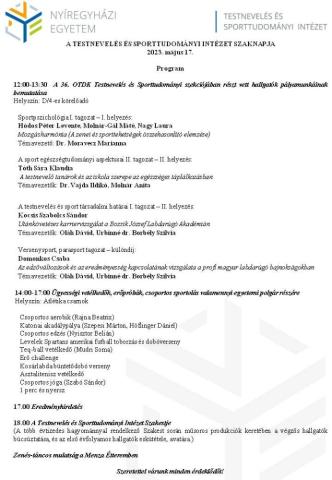 12:00-13:30 A 36. OTDK Testnevelés és Sporttudományi szekciójában részt vett hallgatók pályamunkáinak bemutatása