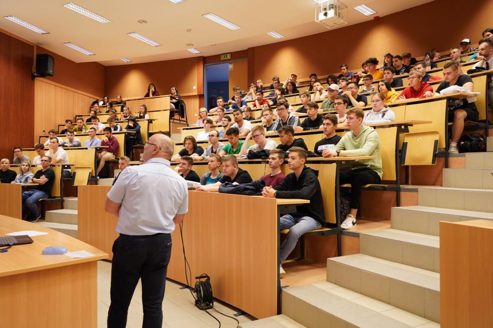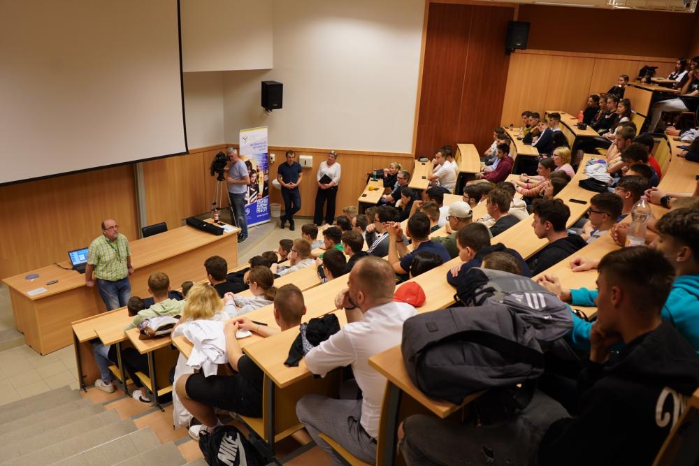 Ezután dr. Vályi Sándor egyetemi docens az egyetemet és az informatikai-programozói képzések sajátosságait mutatta be. – Felsőoktatásba azért érdemes gondolkozni a középiskolásoknak, mert egy diplomával olyan szellemi munkát lehet majd végezni, amivel egy magasabb társadalmi státuszt is lehet szerezni. Informatikus, programozó végzettséggel pedig átlag feletti bérezést kapnak már a frissen végzett fiatalok is. Kiemelt státusza van ennek a szakmának. A Nyíregyházi Egyetem informatikai szakára azért is érdemes jelentkezni, hiszen folyamatosan frissítjük a tananyagot, állandóan kooperálunk a régióban lévő cégekkel, bevonjuk őket az oktatásba a mai kornak megfelelő technológiákkal. Ez az intézmény tanárképző volt sokáig, ezért empatikusabban tudunk például matematikát tanítani. Nem óriási a mérete az egyetemünknek, ezért sokkal személyesebb, barátságosabb, könnyebb szociális kapcsolatokat kiépíteni. Személyesen ismerjük egymást, így a hallgatókra is több figyelmet tudunk szentelni. Az informatikai ipar vármegyénkben is jelen van, így helyben is lehet munkát találni – ajánlotta az egyetemi docens, majd hozzátette: programtervező informatikus és mérnök informatikus szak is indul a Nyíregyházi Egyetemen.