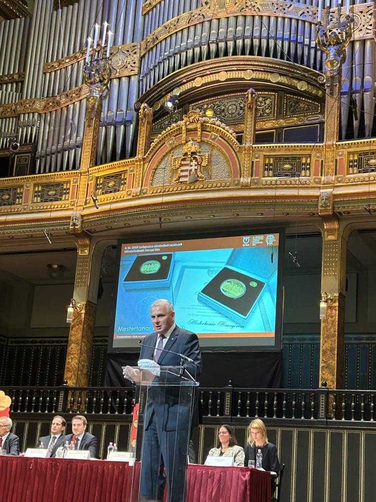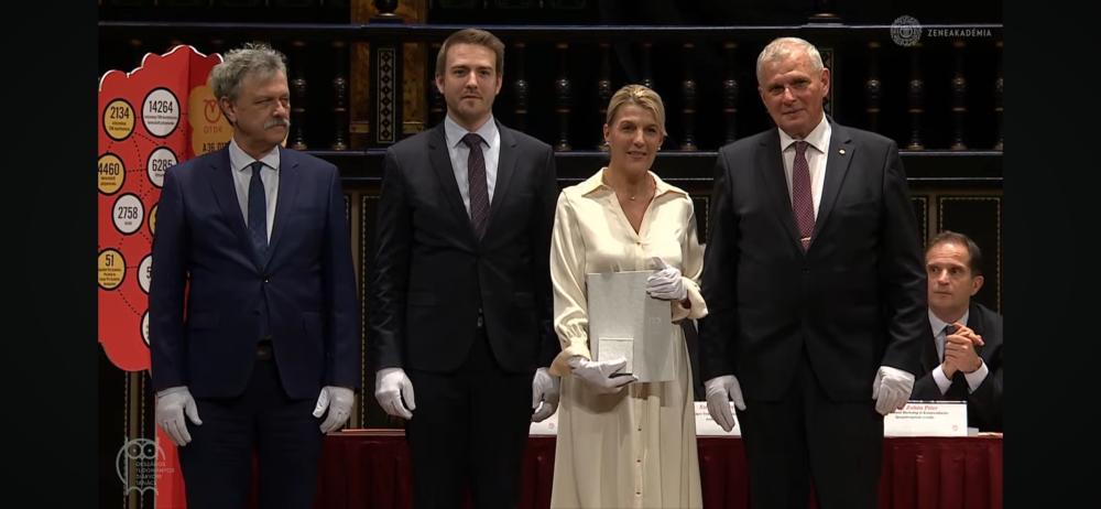 Dr. Vajda Ildikó, intézetigazgató, főiskolai tanár egyetemünk újabb Mestertanár Aranyérmese, aki a rangos elismerést 2023. november 24-én, Budapesten, a Zeneakadémián megrendezett díszünnepség keretében vehette át az OTDT elnökétől Prof. Dr. Weiszburg Tamástól.