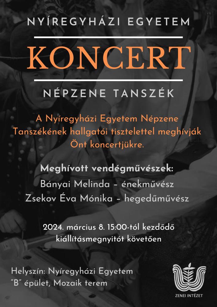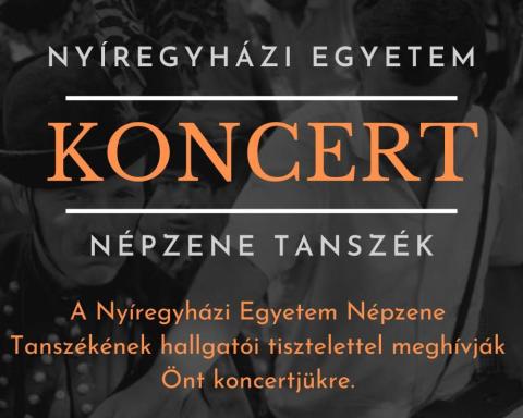 A Nyíregyházi Egyetem Zenei Intézetének Népzene Tanszéke ezúton is meghívja az érdeklődőket a hallgatók által tartandó koncertjükre.