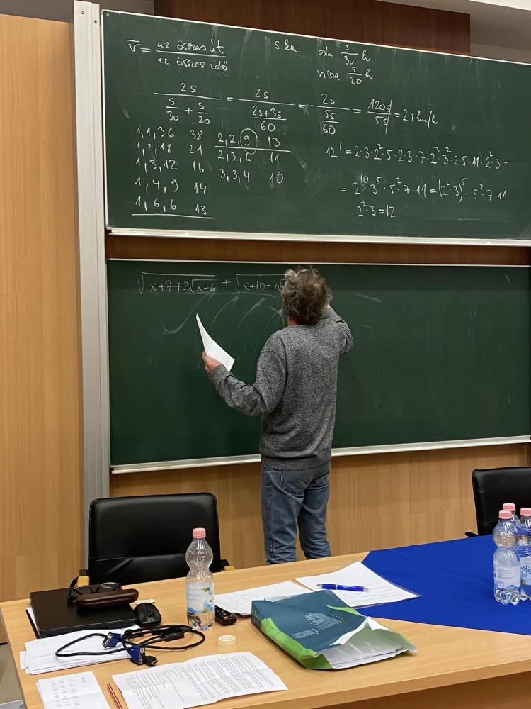 Az eredményhirdetés előtt Dr. Vattamány Szabolcs ismertette a példák megoldásait. A tárgynyereményeket a Nyíregyházi Egyetem, a LEGO Education Innovation Studio (LEIS) és a Bolyai János Matematika Társulat ajánlotta fel.