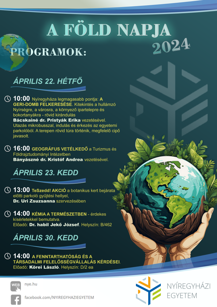 A FÖLD NAPJA 2024, a Nyíregyházi Egyetemen, programok: