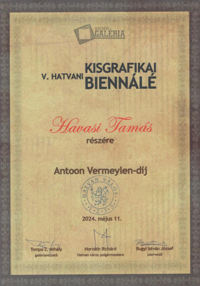 Idén, immáron ötödik alkalommal, nagy szakmai sikerrel rendezték meg a Hatvani Kisgrafikai Biennálét, ahol Havasi Tamás grafikusművész, a Nyíregyházi Egyetem Vizuális Kultúra Intézetének oktatója Antoon Vermeylen-díjat vehetett át.