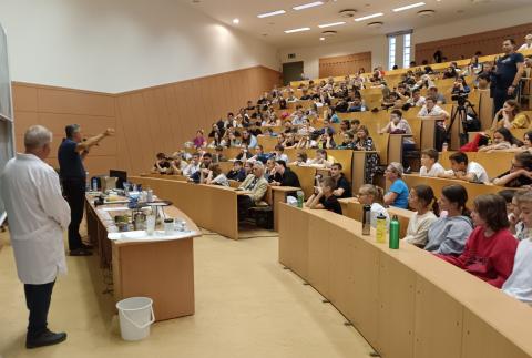 Füst, hab, robbanás – hangos ováció kísérte a fizika és kémia előadásokat a Nyíregyházi Egyetemen szervezett Kutatók Éjszakáján, szeptember 27-én. A rendezvénysorozat harminc helyszínen közel hetven programot kínált, köztük látványos kísérletshow-kat, amelyre a térség számos általános és középiskolájából is érkeztek diákok.