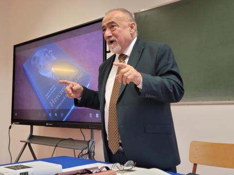 December 3-án a Nyelv- és Irodalomtudományi Intézetbe látogatott Takaró Mihály író, irodalomtörténész, pedagógus, akinek a közelmúltban jelent meg (Liktor Katalinnal közösen írott) könyve: Herczeg Ferenc regényeinek és drámáinak világa. A vendéget dr. habil. Minya Károly PhD intézetigazgató üdvözölte, majd munkásságát dr. habil. Karádi Zsolt PhD főiskolai tanár mutatta be. Ezt követően Bugarin-Horváth Luca, II. éves magyar nyelv és irodalom–ének-zene osztatlan tanár szakos hallgató felolvasta az említett kötet előszavát.