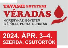 Véradás lesz az egyetemen. Rád is számítunk! 2024. április 3-én (szerdán) és 4-én (csütörtökön) várjuk a véradókat a Nyíregyházi Egyetemen. Az egyetem, a Magyar Vöröskereszt Szabolcs-Szatmár-Bereg Megyei Szervezete és az Országos Vérellátó Szolgálat által szervezett véradásra szerdán 11:30 és 14:30, csütörtökön 12:00-14:30-ig érkezhetnek a segítő szándékú véradók, hallgatók, dolgozók, oktatók a "B" tanulmányi épület bejáratánál, a szokásos helyszínen.
