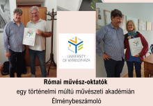2023. november 30-án 14:30-kor élménybeszámoló előadást tart Dr. Zielinski Tibor, a Nyíregyházi Egyetem Vizuális Kultúra Intézetének oktatója Római művész-oktatók egy történelmi múltú művészeti akadémián címmel. Helyszín: Nyíregyházi Egyetem, K13-as terem. A programra minden érdeklődőt szeretettel várunk.