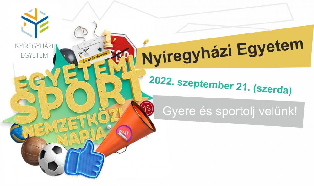2022. szeptember 21-én szerdán tartják a Nyíregyházi Egyetemen, a Testnevelés és Sporttudományi Intézet szervezésében az Egyetemi Sport Nemzetközi Napját. Az eseményen színes programok és sportolási lehetőségek várják a hallgatókat.